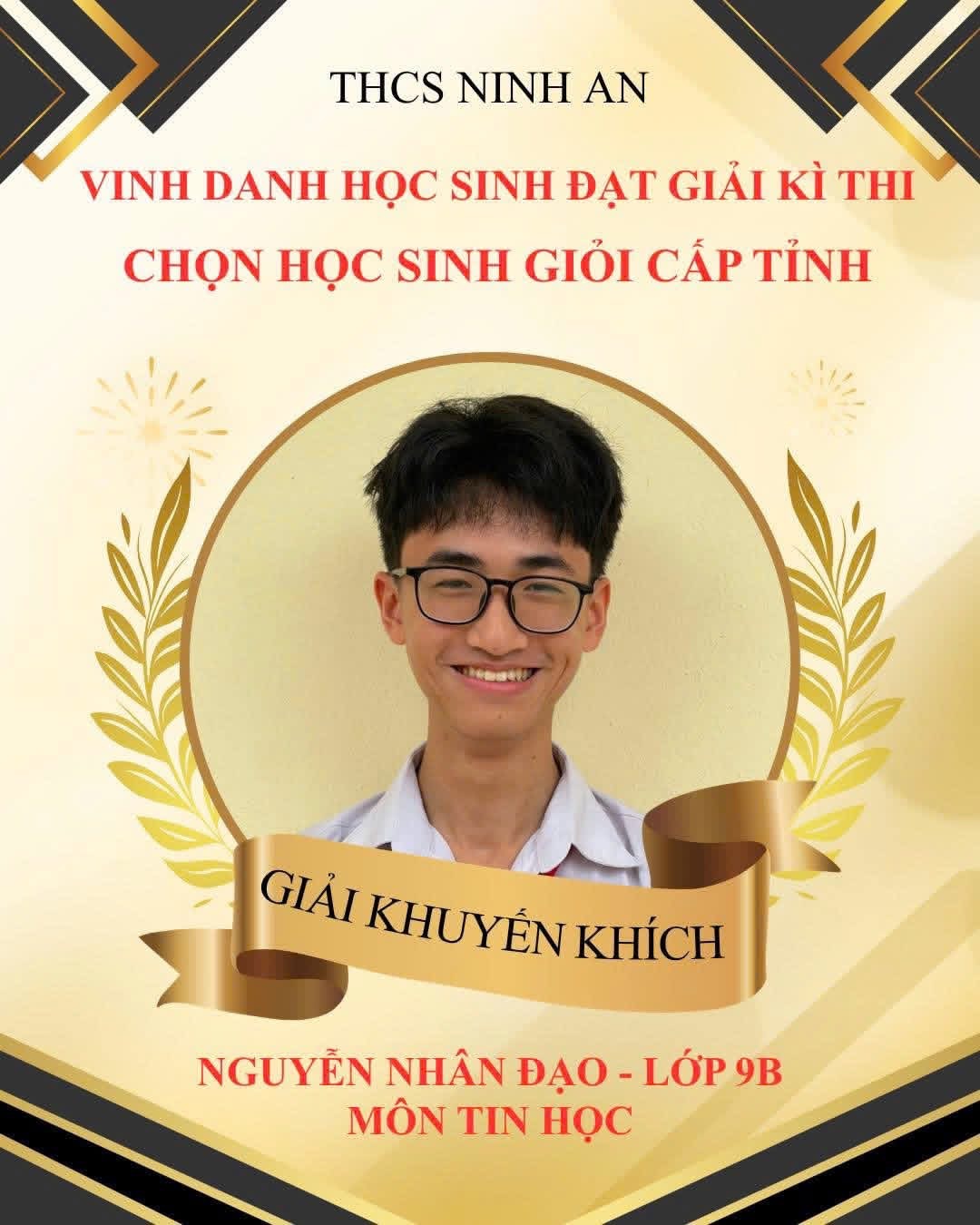 Chúc mừng đội tuyển học sinh giỏi khối 9 của trường THCS Ninh An đã hoàn thành xuất sắc kỳ thi với những kết quả đáng tự hào!